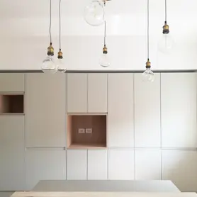 Ristrutturazione integrale di una grande abitazione, dal diverso layout dei divisori e degli spazi, alla dotazione di nuovi servizi e impianti, agli arredi su misura e di recupero (integrati), alla scelta delle finiture e degli impianti canalizzati