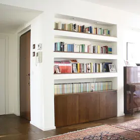 Abbiamo studiato al centimetro ogni dotazione di questa casa, proprio come su una nave, cercando di offrire alla coppia che la abita ogni spazio richiesto: quello per la musica, l'angolo studio, l'ampia cucina, i servizi dotati di ogni attrezzatura, persino quelli per i gatti!